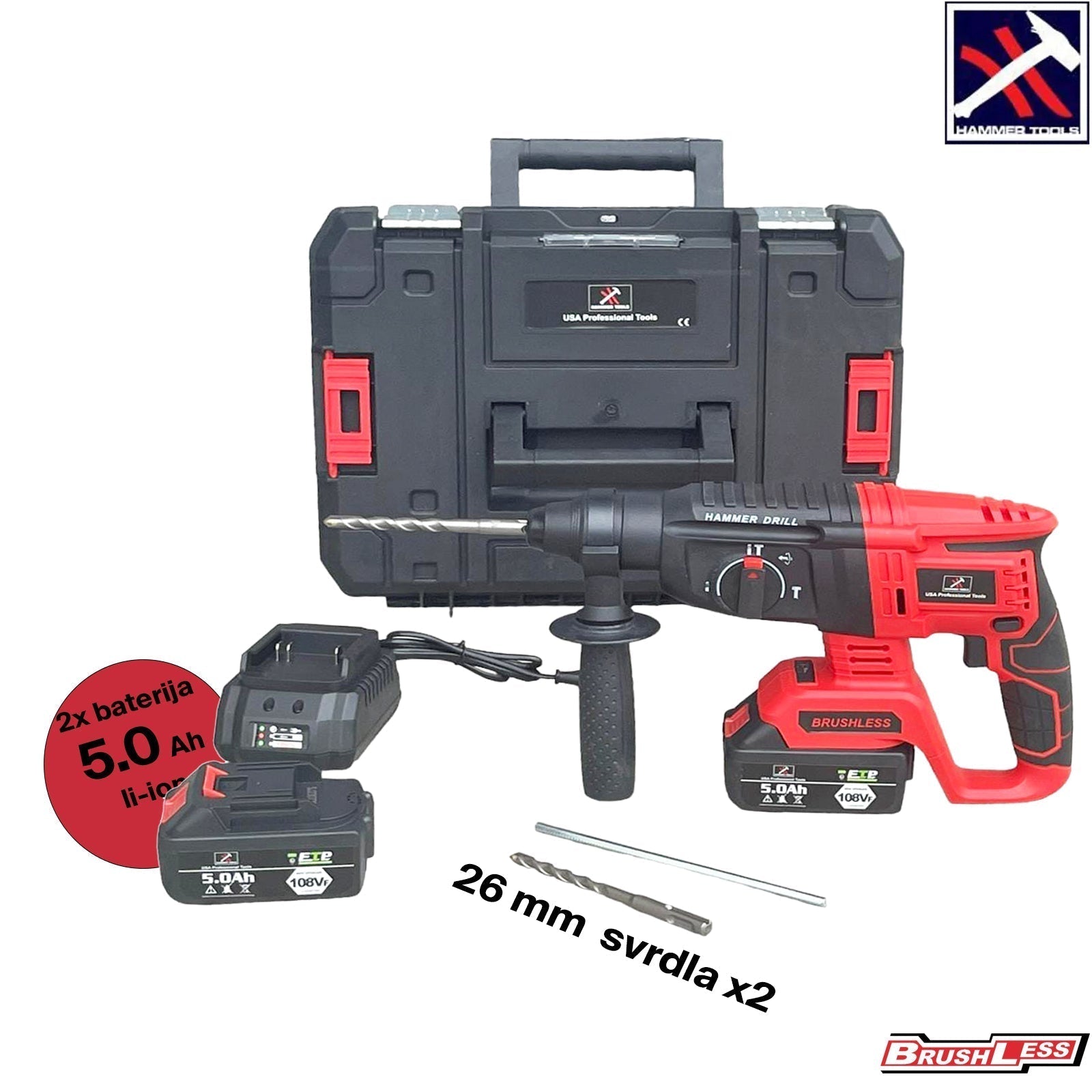 AKKUMULÁTOROS ÜTVEFÚRÓ 2x5.0Ah Li-ion AKKUMULÁTOR 26 mm BITEKKEL KALAPÁCS SZERSZÁMOKKAL