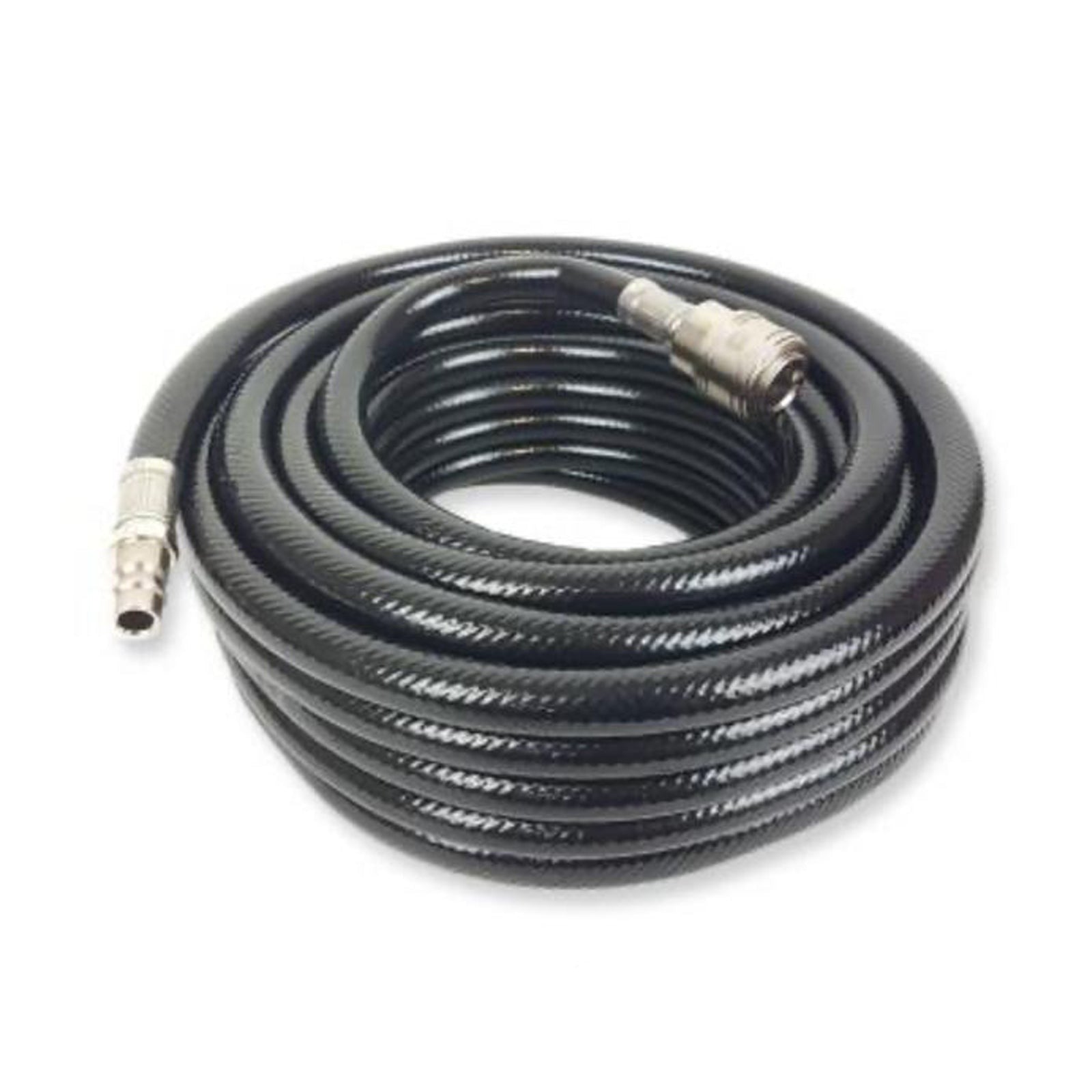 Ezek a tömlők megerősített falakkal vannak ellátva, amelyek fokozott szilárdsággal és repedésállósággal rendelkeznek, így ellenállnak a kompresszorból származó magas légnyomásnak. A tömlők könnyen kezelhetők és hajlíthatók, így praktikusak szűk vagy nehezen elérhető helyeken való használatra.A tömlő fekete színe elegáns megjelenést kölcsönöz neki, miközben elrejti a szennyeződéseket és a karcolásokat, amelyek egyébként láthatóak lennének a világos színű anyagokon. Ez a fekete szín ellenáll az UV-sugaraknak és más időjárási viszonyoknak is, ami azt jelenti, hogy a tömlő hosszú ideig megőrzi megjelenését és funkcionalitását.