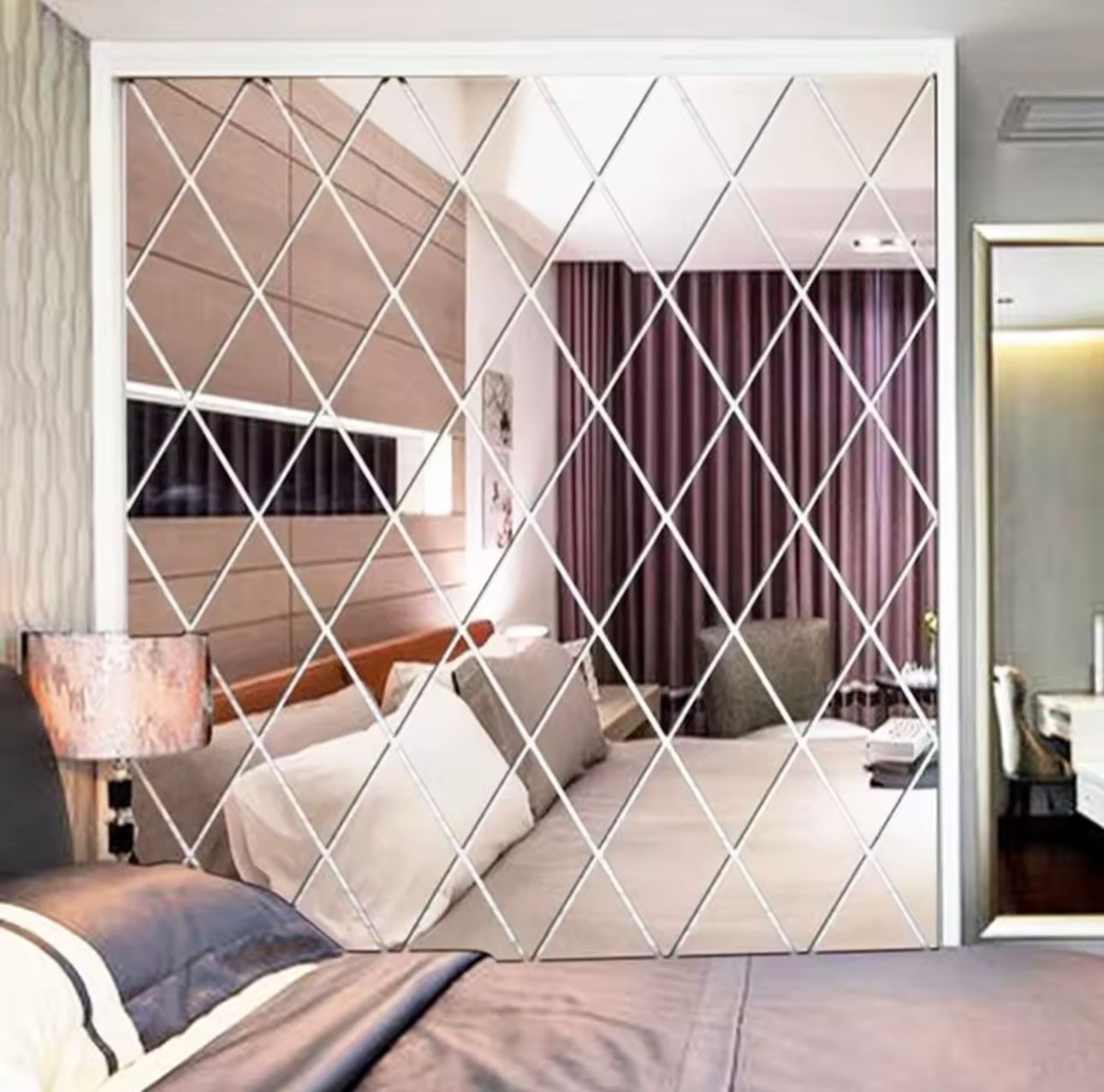 A dekoratív falitükör lapok elegáns tükörfal- vagy mozaikhatást hoznak létre. Könnyűek, egyszerűen felhelyezhetők és nem igényelnek szakembert – elég lehúzni a védőfóliát és felragasztani őket a tiszta, sima felületre. Kiválóak modern enteriőrök kialakításához, valamint a tér mélységének növeléséhez.