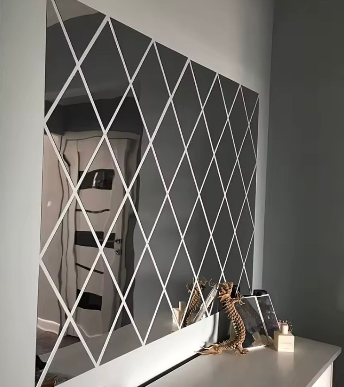 Felhasználás: faldekoráció, optikai térnövelés, modern “mirror wall” hatás