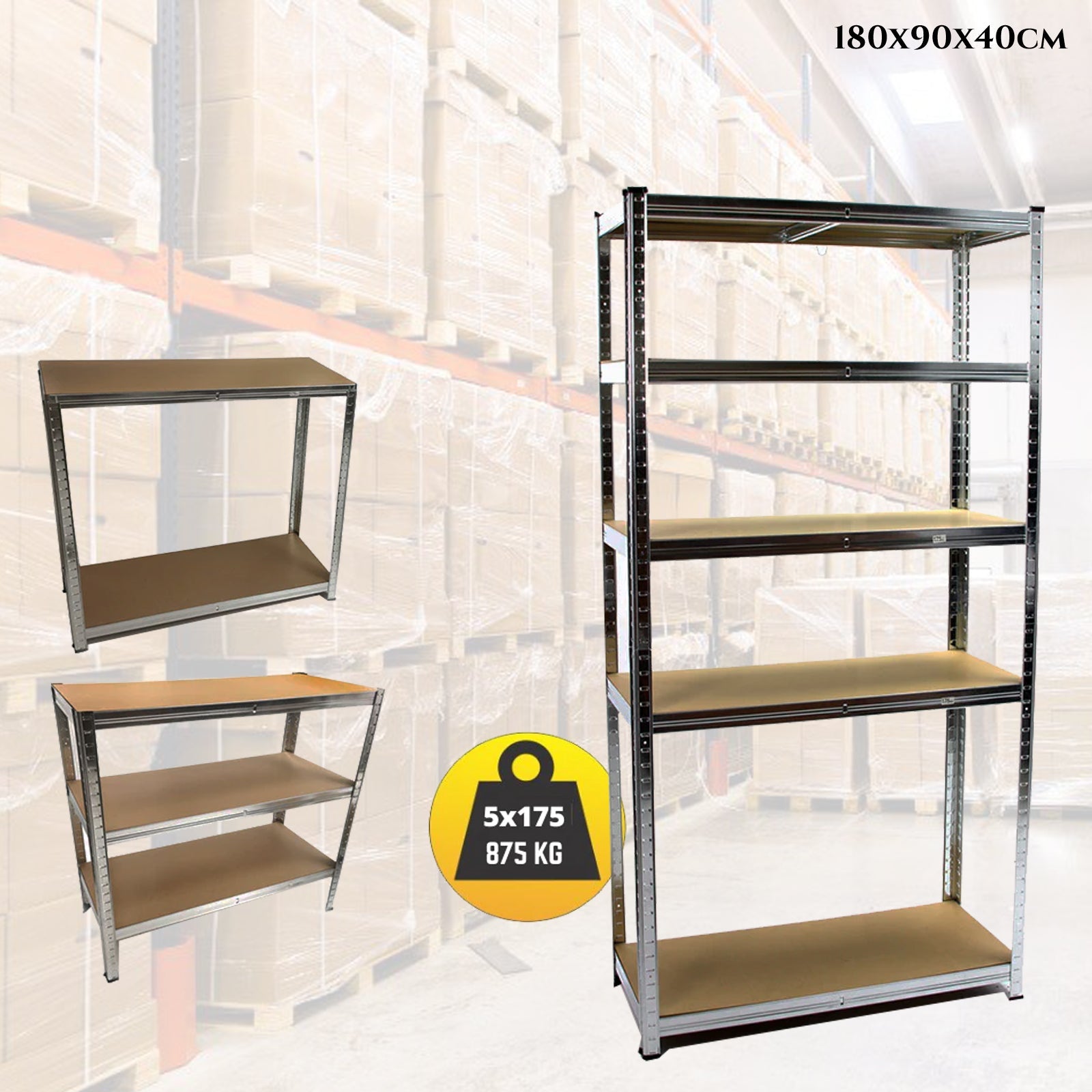 Robusztus és praktikus fém polcrendszer garázs, műhely vagy raktár rendszerezéséhez. Ideális megoldás szerszámok, dobozok, alkatrészek és egyéb felszerelések tárolására.