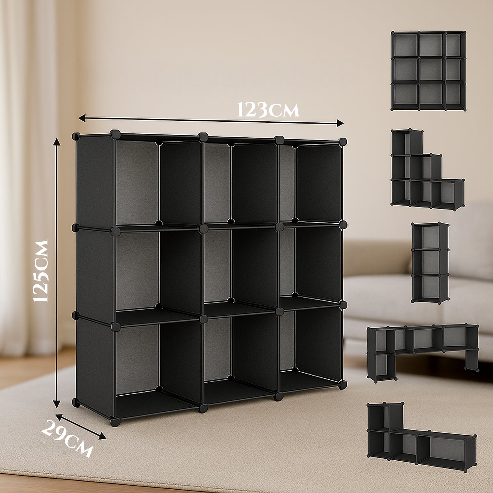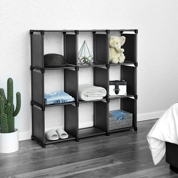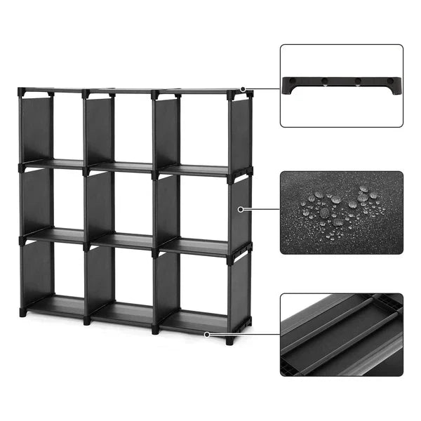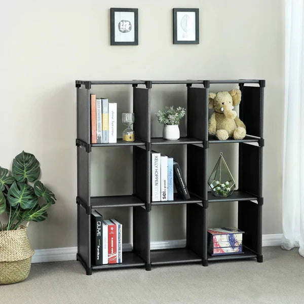 - 📚 9 tágas kocka rekesz könyvek, cipők, játékok vagy dekorációs tárgyak számára.