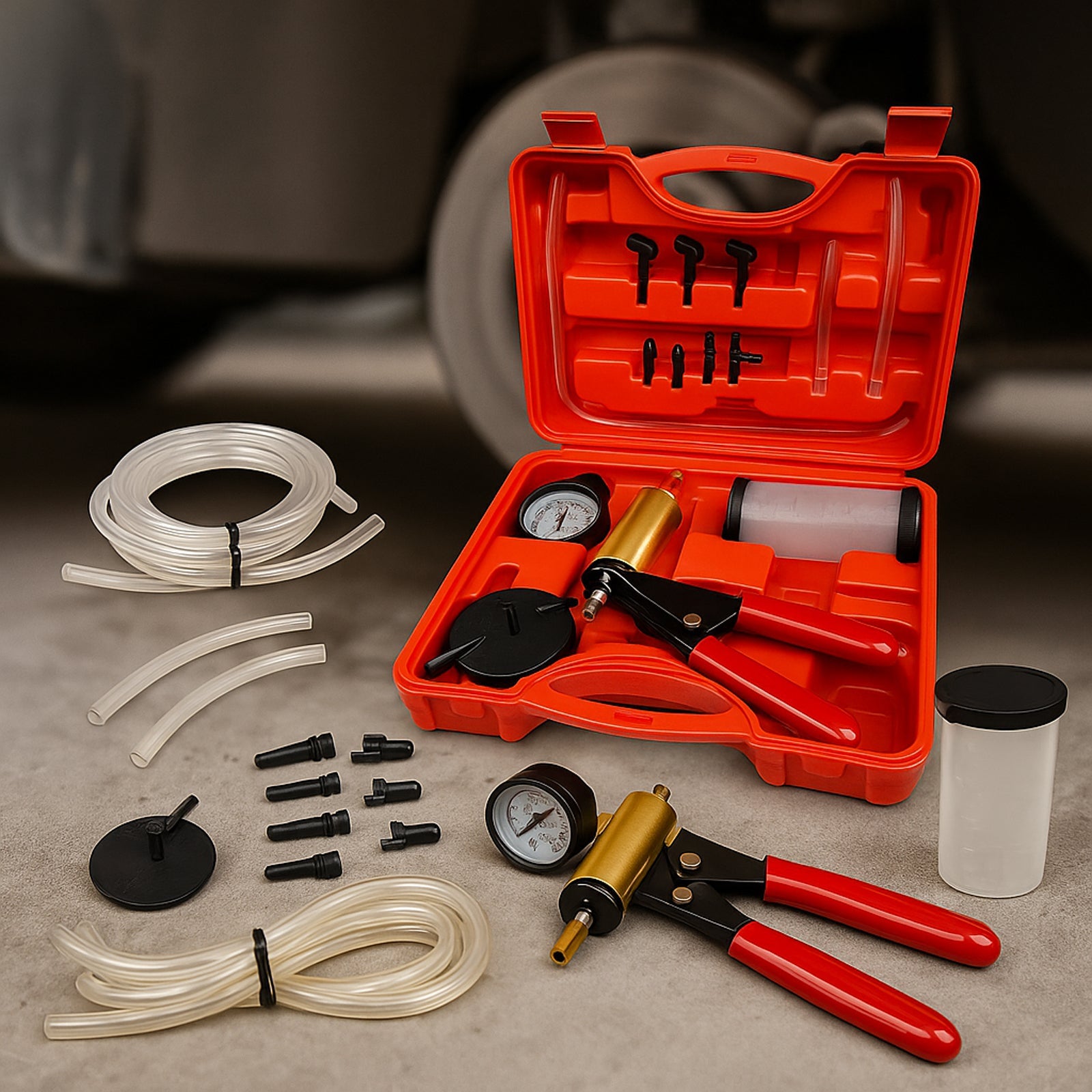 🛠️ Termékleírás: Praktikus féklégtelenítő készlet vákuumpumpával 🚗