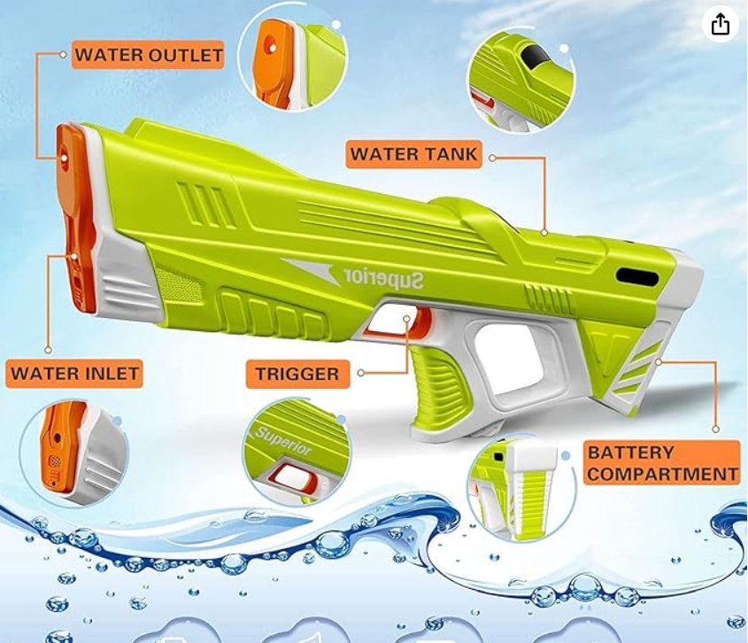 EztSzuper vízipisztolyAz újratölthető akkumulátorral ideális mindazok számára, akik élvezni szeretnék a vízi szórakozást, akár az udvaron, a strandon vagy a parkban játszik. Nagy nyomásának és hosszú élettartamának köszönhetően kiváló teljesítményt biztosít órákon át tartó szórakozáshoz!